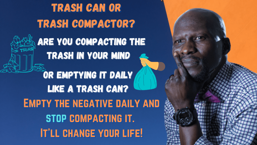 Most days of the week in different parts of the town, there’s a special man, that comes around. He stops at every house and open ups your can, yup you guessed it he’s the trash man. Here’s what he came to do collect the trash that’s accumulated around you. In order for him to do the job successfully, we must be willing to set our minds free. This what he needs you to do throw out all the trash that’s accumulated around you. Don’t allow the trash to compact in your mind, give all to God who can handle it just fine. Freeing ourselves of the negative trash will surely ease our mind. Will you sit out your trash today or will you compact it and hope everything will be okay? I’m here to tell you to much negative trash in our minds will drive you Crazy. Let go and let GOD.